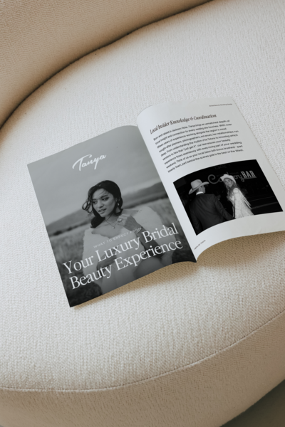 From the moment you become a Hair & Makeup By Tanya bride, we’ll provide you with everything you need to feel organized, confident, and cared for. Throughout your bridal beauty experience, you’ll receive detailed planning materials at every touch point; from hyper local Jackson guides, bridal skincare tips, timeline recommendations, and more. These resources are handcrafted to make the process effortless, ensuring every detail aligns seamlessly with your wedding vision.